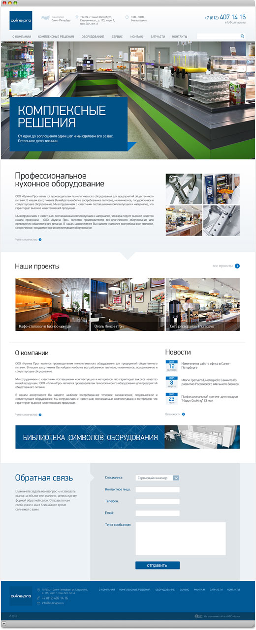 Корпоративный имиджевый сайт-витрина для компании ООО «Кулина Про», которая является официальным дистрибьютором и поставщиком оборудования и запчастей финской компании Metos.