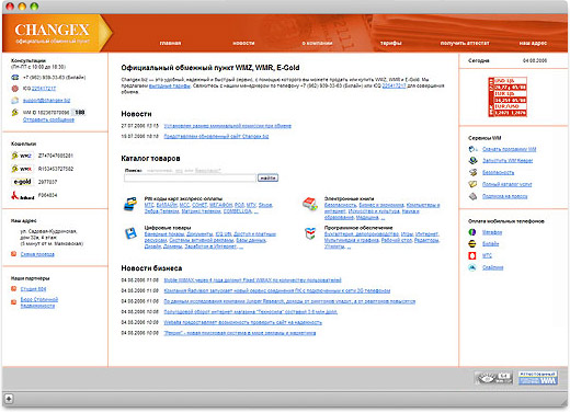Changex.biz — аттестованный и официально зарегистрированный центр обмена Интернет-валют. Компания Changex.biz предлагает услуги по вводу и выводу денежных средств в системах WebMoney Transfer и E-Gold. Сотрудники компании делают всё, чтобы сервис был надежным, выгодным и комфортным.