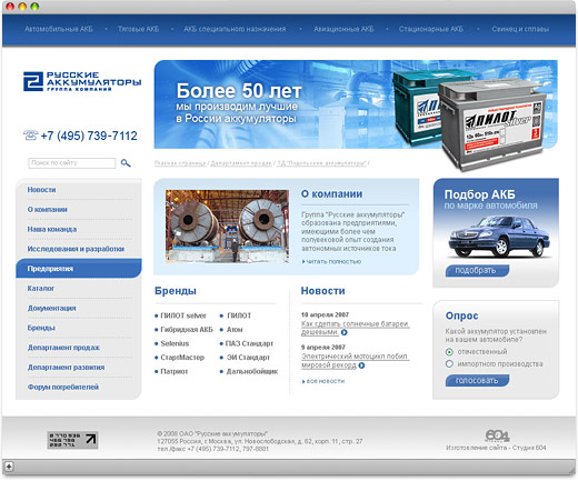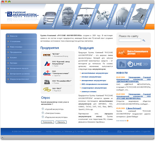 В рамках проекта также были созданы 5 мини-сайтов для предприятий, входящих в Группу Компаний «Русские Аккумуляторы».