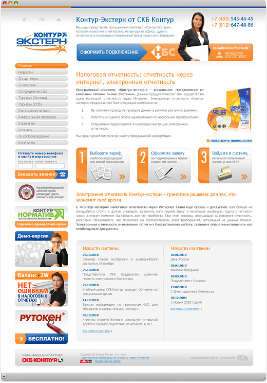 Сайт содержит полную информацию о программном комплексе, тарифы на услуги компании, контактные данные, отзывы клиентов и многое другое. Предусмотрена возможность формирования онлайн-заявки на подключение, онлайн консультация в режиме реального времени со специалистами компании, а также заказ обратного звонка.